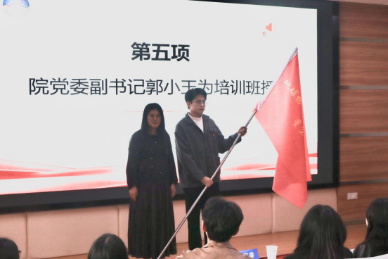 学院党委副书记郭小玉为培训班授旗,标志着2025年“星空团校”培训工作全面启动。
