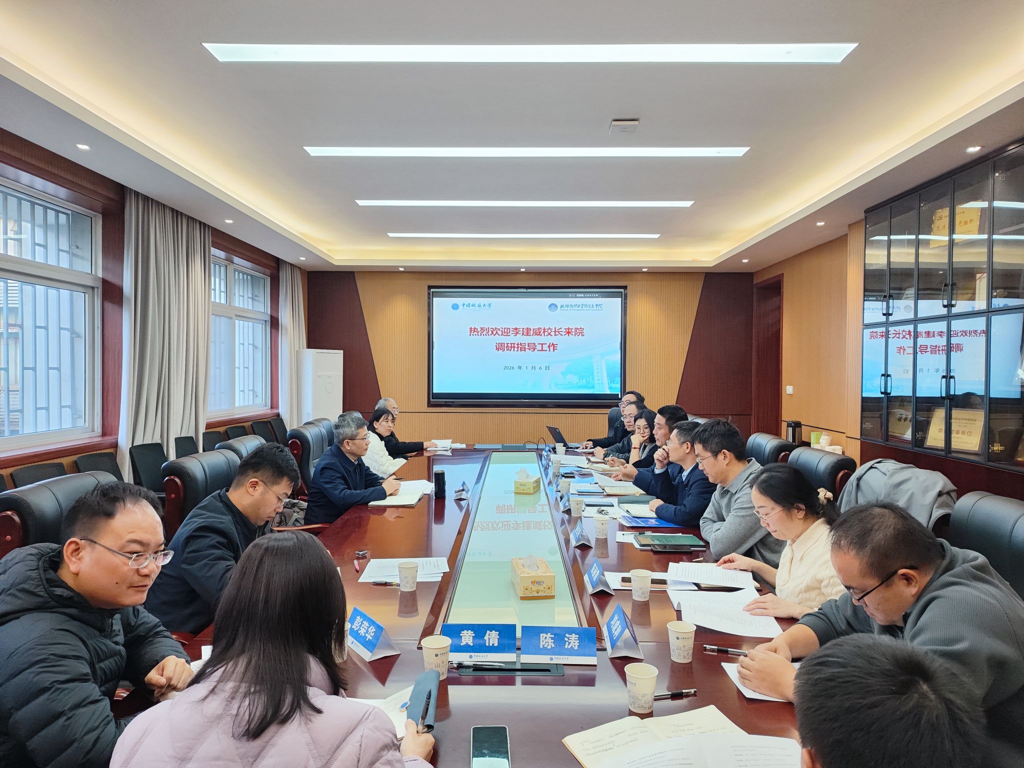 会上,李建威校长强调,学院要紧密围绕学校建设地球科学领域世界一流大学的战略目标,坚定发展信心,发挥地球物理学在探索地球奥秘、服务能源资源安全与防灾减灾中的核心支撑作用。面向“十五五”要精准布局学科方向,坚持差异化、交叉化发展,巩固学科专业优势,拓展深地探测、海洋地球物理、行星物理等特色新兴领域。强化人才队伍建设,构建引育用一体化体系,大力引进顶尖人才,培育青年梯队,优化多元评价机制。加快平台建设,创新管理提升支撑能力。创新人才培养模式,强化新专业建设,改革课程与教学方式,夯实育人根基。坚持开放办学,深化校内协同与国内外合作,对接国家战略,争取更多资源。学院班子应发挥“火车头”作用,加强文化建设,凝聚全院合力,为实现学科跨越式发展、支撑学校战略愿景而不懈奋斗。